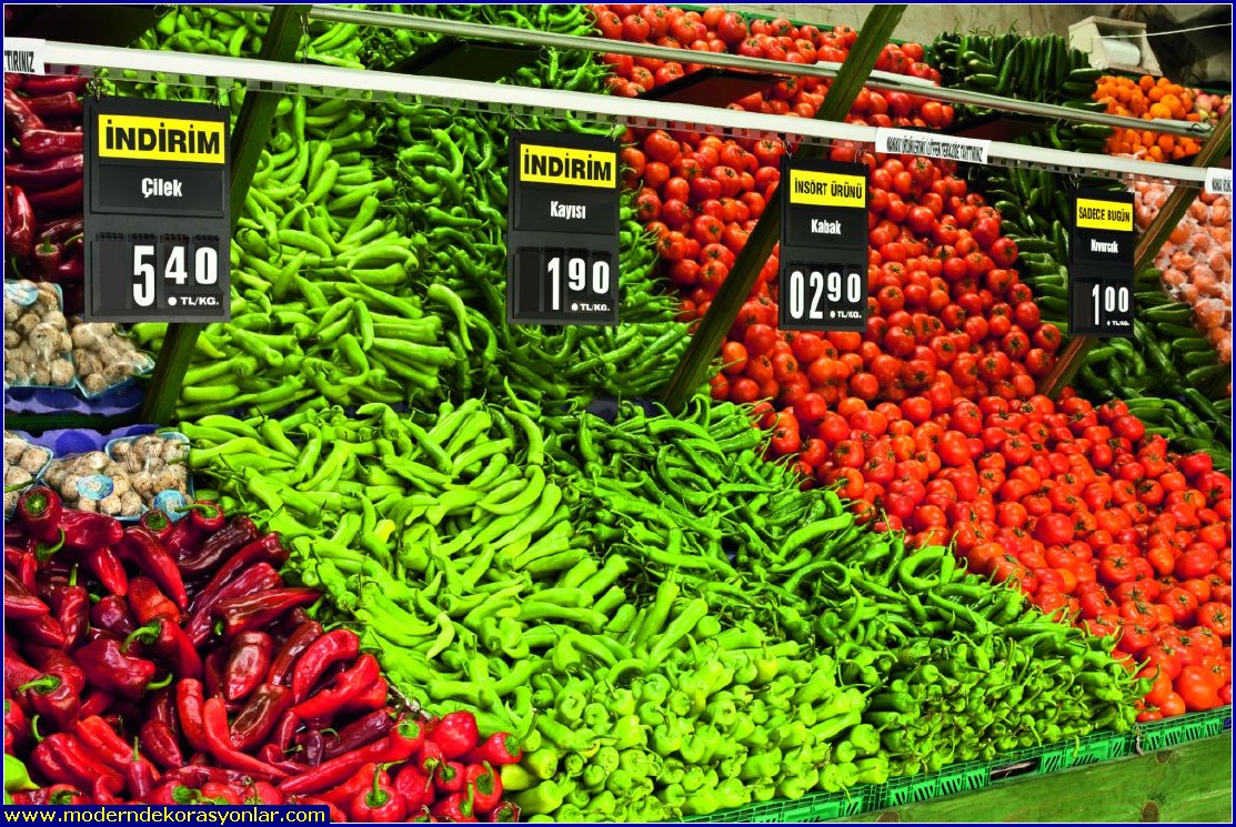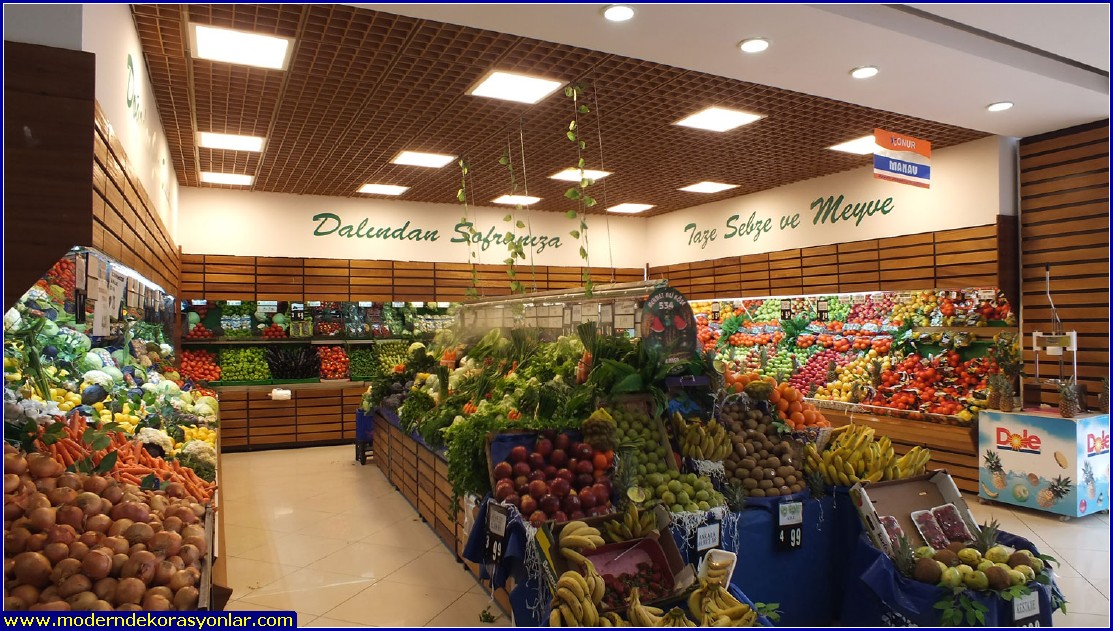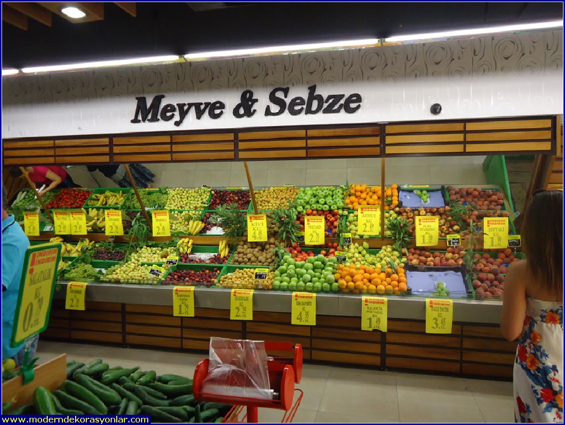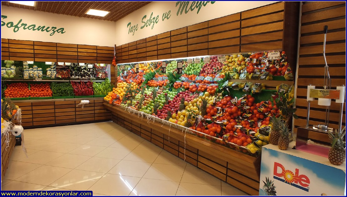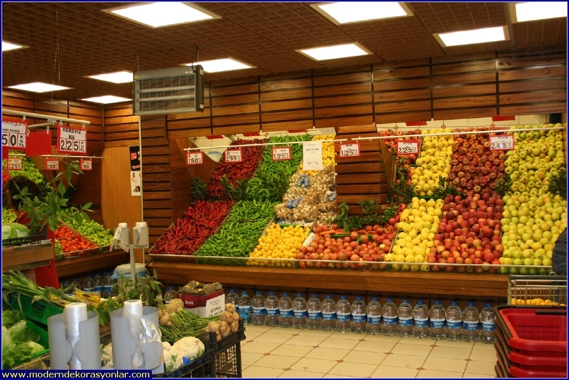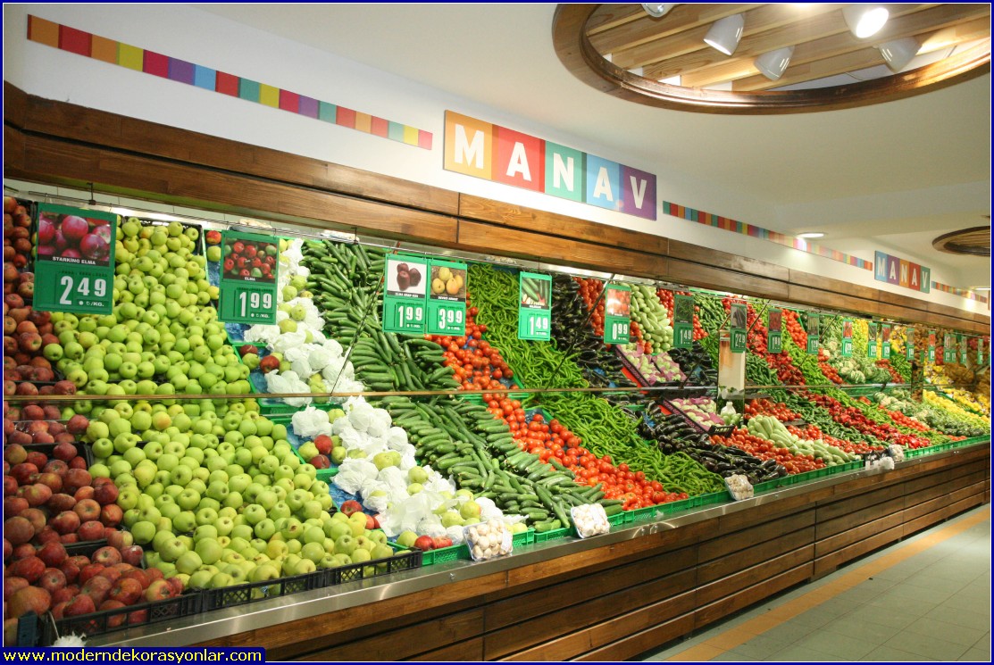 Manav dekorasyon örnekleri bu sayfada yer almaktadır. Süpermarketlerin manav reyonları örnekler arasında büyük yer tutmaktadır.